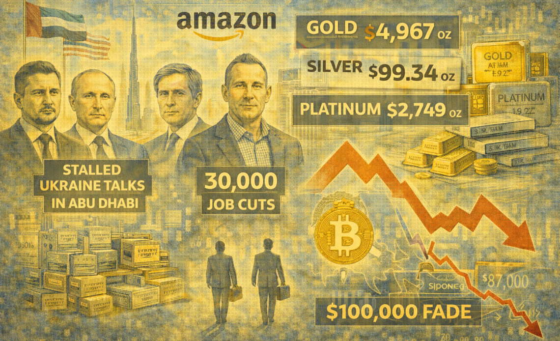 Meanwhile, investors are stampeding into safe havens, sending precious metals to record highs, while Bitcoin’s $100,000 narrative fades fast under renewed macro pressure.