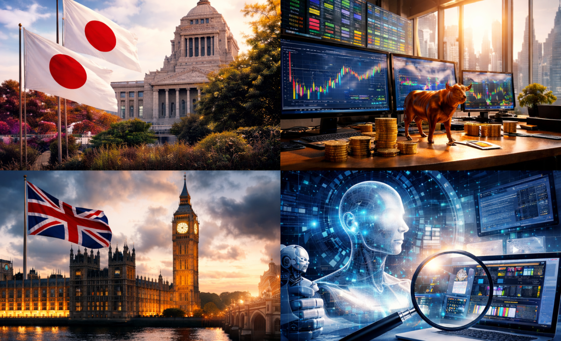 Investors reacted to a sweeping election victory of Sanae Takaichi in Japan, fresh gains in Asian equities, political turbulence in the UK, and a rally in Chinese artificial-intelligence shares following a new product launch from ByteDance.